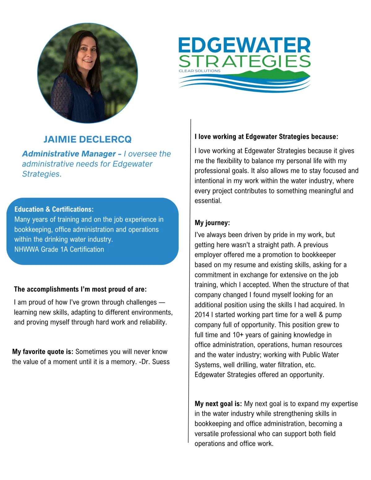 Edgewater Strategies collaborates with engineers, public water system operators, contractors and well drillers bring water projects to fruition.